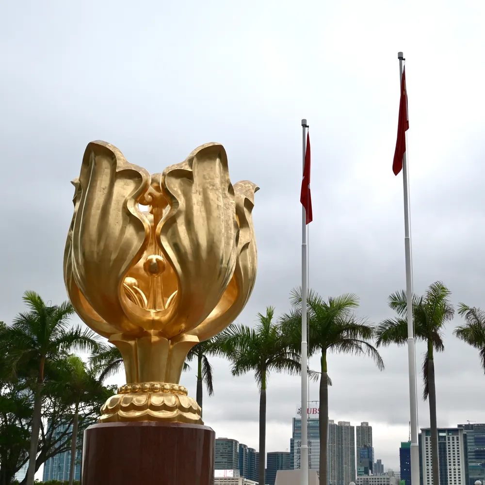 金紫荆广场中间的其实是一个铜像(不是金的),是香港回归中国时候中国政府赠送给香港的,属于非常有象征意义的铜像