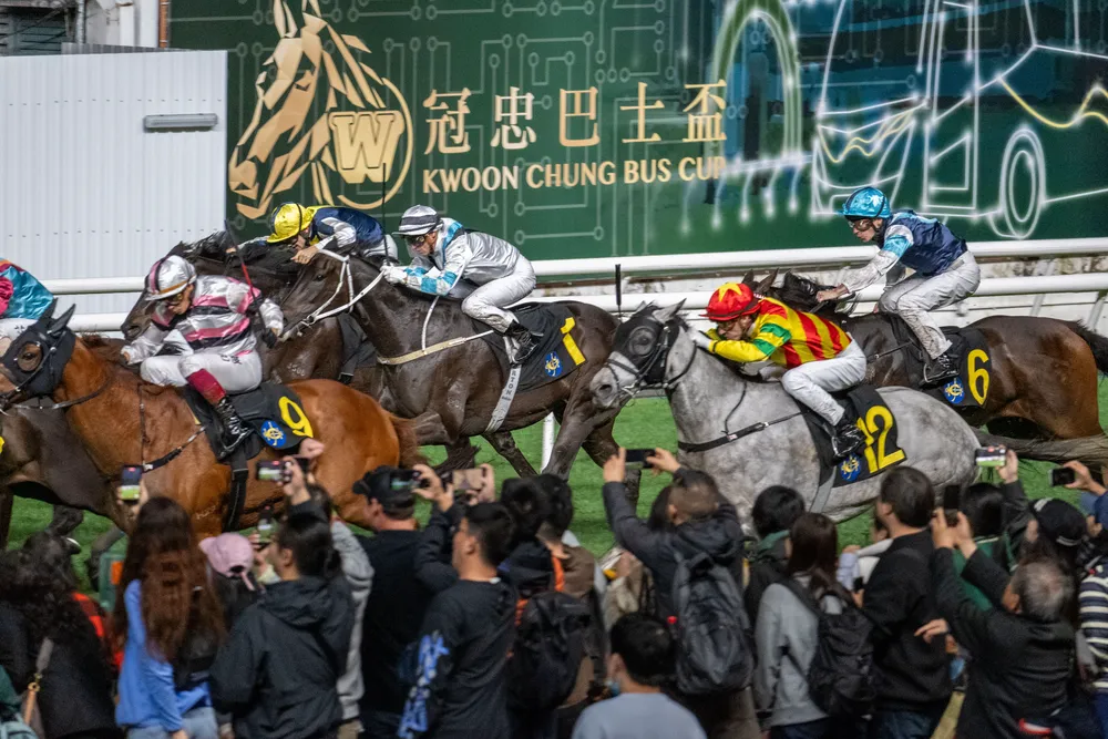 接下来会背着骑手再绕几圈,发现香港赛马的骑手好像基本都是欧美人,基本上看不到香港本地的骑手
