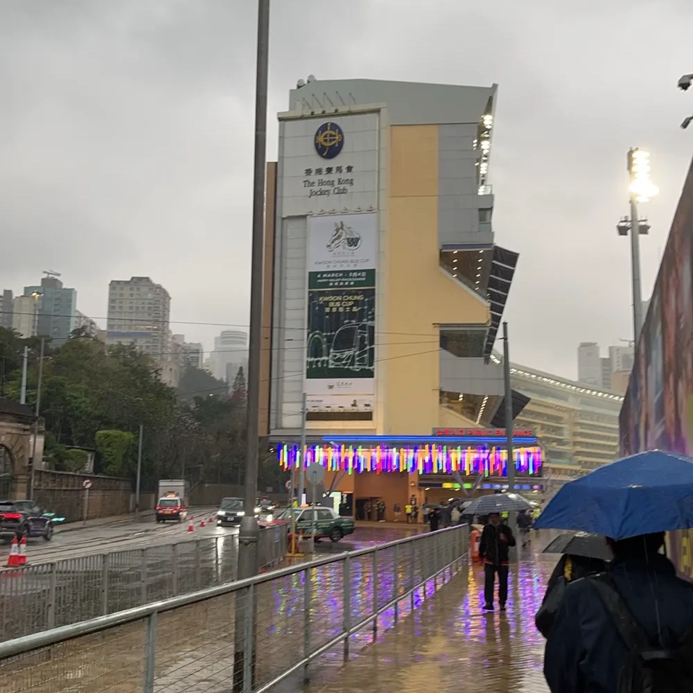 因为天气实在太差,加上山顶基本没有歇脚的地方(都是商店),所以我选择下山去跑马场(这天是周三,在香港岛的跑马场有比赛)