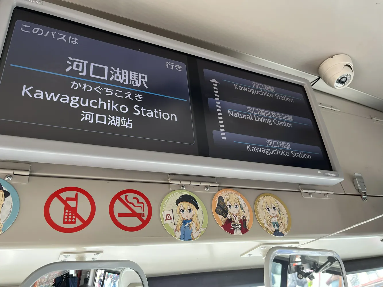 抵达河口湖站之后坐红线公交,这是一条游览线路,到达河口湖的北岸在哪下车其实都可以,我就照着地图随便找个地方下车